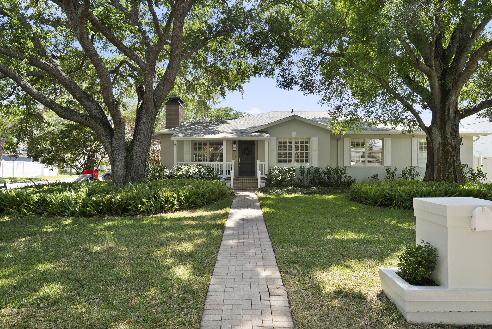 Situated on an oversized, corner lot beneath a canopy of beautiful oak trees, this single-story cottage blends timeless charm with modern conveniences. From the moment you approach along the pavered walkway, envision evenings spent relaxing on the covered front porch, chatting with neighbors, and watching children play on the expansive front yard. Step inside to discover a warm, welcoming atmosphere. Enjoy cozy evenings by the brick-clad fireplace in the formal living room. Or host a meal in the dining room, which is spacious enough for gatherings and entertaining. The home’s thoughtful design ensures it is perfect for hosting friends and family. The updated kitchen is a chef’s delight, equipped with a gas cooktop, double ovens, quartz countertops, plentiful storage, and ample prep space. There’s even a counter with seating for four, making it ideal for both casual and formal meals. For those looking to host events, the oversized family room offers space for the largest sectional and includes a built-in wet bar with a beverage fridge. It’s perfect for game-watching parties. Open the French doors to the screened-in lanai to enjoy a pool party, or use the outdoor kitchen to host a barbecue cook-off. The side yard features turf for low-maintenance fun. If you need extra space, there’s a bonus air-conditioned structure that’s ideal for a home office, she-shed, mancave, or additional workspace. It’s conveniently separate from the main home for privacy and flexibility. The primary suite overlooks the pool area and offers generous space for a king bed, dressers, and a peloton. The primary bathroom includes a soaking tub, walk-in shower, dual sink vanity, and a walk-in closet with a shelving system. Down the hall, you’ll find a spacious laundry room, a secondary bedroom, and a full bath. There are two more bedrooms and a half bath for additional comfort. This home includes a spacious two-car garage with a covered walkway to the main home. Other features include a new roof (2024), tankless water heater, engineered wood floors, an electric vehicle charger and no flood insurance required! It’s zoned for A-rated schools—Roosevelt, Coleman, and Plant—and is conveniently located close to downtown Tampa, Tampa International Airport, and just a short drive to the beaches. Everything you could ever want and more is waiting for you here. Schedule your showing today!